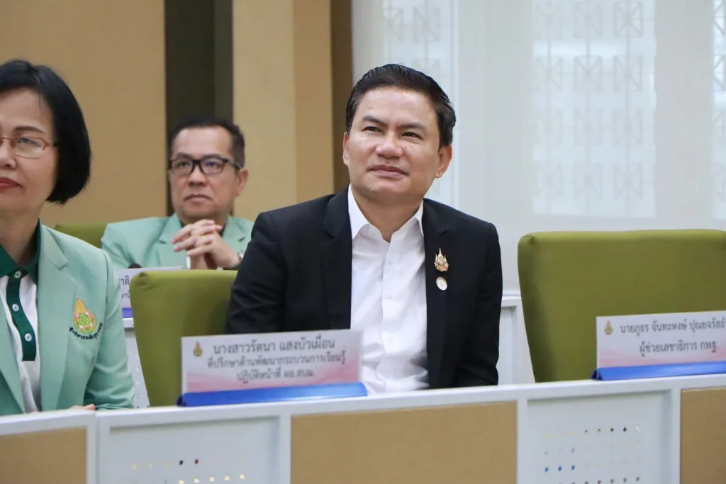 วันที่ 30 กันยายน 2568 ว่าที่ร้อยตรี ธนุ วงษ์จินดา เลขาธิการคณะกรรมการการศึกษาขั้นพื้นฐาน (เลขาธิการ กพฐ.) เป็นประธานการประชุมผู้บริหาร สพฐ. ครั้งที่ 36/2568 โดยเน้นย้ำข้อสั่งการตามนโยบายของกระทรวงศึกษาธิการ และ สพฐ. เพื่อให้ผู้บริหารและบุคลากรดำเนินการขับเคลื่อนอย่างเร่งด่วน พร้อมทั้งกล่าวอำลาข้าราชการและบุคลากรของ สพฐ. เนื่องในโอกาสเกษียณอายุราชการ โดยมี นางเกศทิพย์ ศุภวานิช รองเลขาธิการ กพฐ. นายพัฒนะ พัฒนทวีดล รองเลขาธิการ กพฐ. นายธีร์ ภวังคนันท์ รองเลขาธิการ กพฐ. นายภูธร จันทะหงษ์ ปุณยจรัสธำรง ผู้ช่วยเลขาธิการ กพฐ. นางภัทริยาวรรณ พันธุ์น้อย ผู้ช่วยเลขาธิการ กพฐ. รวมถึงผู้อำนวยการเขตตรวจราชการ ผู้อำนวยการสำนักต่างๆ และผู้เกี่ยวข้อง เข้าร่วม ณ ห้องประชุม สพฐ. 1 อาคาร สพฐ. 4 ชั้น 2 กระทรวงศึกษาธิการ และผ่านระบบ Zoom meeting