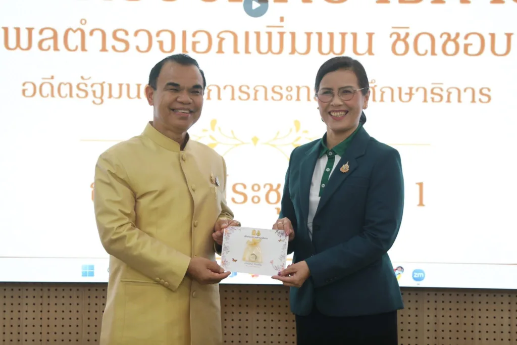 โอกาสนี้ สพฐ. ได้จัดพิธีส่งมอบหน้าที่ราชการ ระหว่าง ว่าที่ร้อยตรี ธนุ วงษ์จินดา เลขาธิการ กพฐ. ในนามผู้ส่งมอบ กับนางภัทริยาวรรณ พันธุ์น้อย ผู้ช่วยเลขาธิการ กพฐ. ในนามผู้รับมอบ เพื่อให้การดำเนินงานต่อเนื่องอย่างเป็นระเบียบเรียบร้อย โดยในปีนี้ มีผู้บริหารระดับสูงของ สพฐ. ที่ครบกำหนดเกษียณอายุราชการ จำนวน 3 คน ได้แก่ ว่าที่ร้อยตรี ธนุ วงษ์จินดา เลขาธิการ กพฐ. นายพัฒนะ พัฒนทวีดล รองเลขาธิการ กพฐ. และนายธีร์ ภวังคนันท์ รองเลขาธิการ กพฐ. ขณะที่นางเกศทิพย์ ศุภวานิช รองเลขาธิการ กพฐ. ได้รับการแต่งตั้งให้ดำรงตำแหน่งอธิบดีกรมส่งเสริมการเรียนรู้ (สกร.) นายภูธร จันทะหงษ์ ปุณยจรัสธำรง ผู้ช่วยเลขาธิการ กพฐ. ได้รับการแต่งตั้งให้ดำรงตำแหน่งผู้ตรวจราชการกระทรวงศึกษาธิการ และนางภัทริยาวรรณ พันธุ์น้อย ผู้ช่วยเลขาธิการ กพฐ. ได้รับการแต่งตั้งให้ดำรงตำแหน่งรองเลขาธิการ กพฐ. ตั้งแต่วันที่ 1 ตุลาคม 2568 เป็นต้นไป